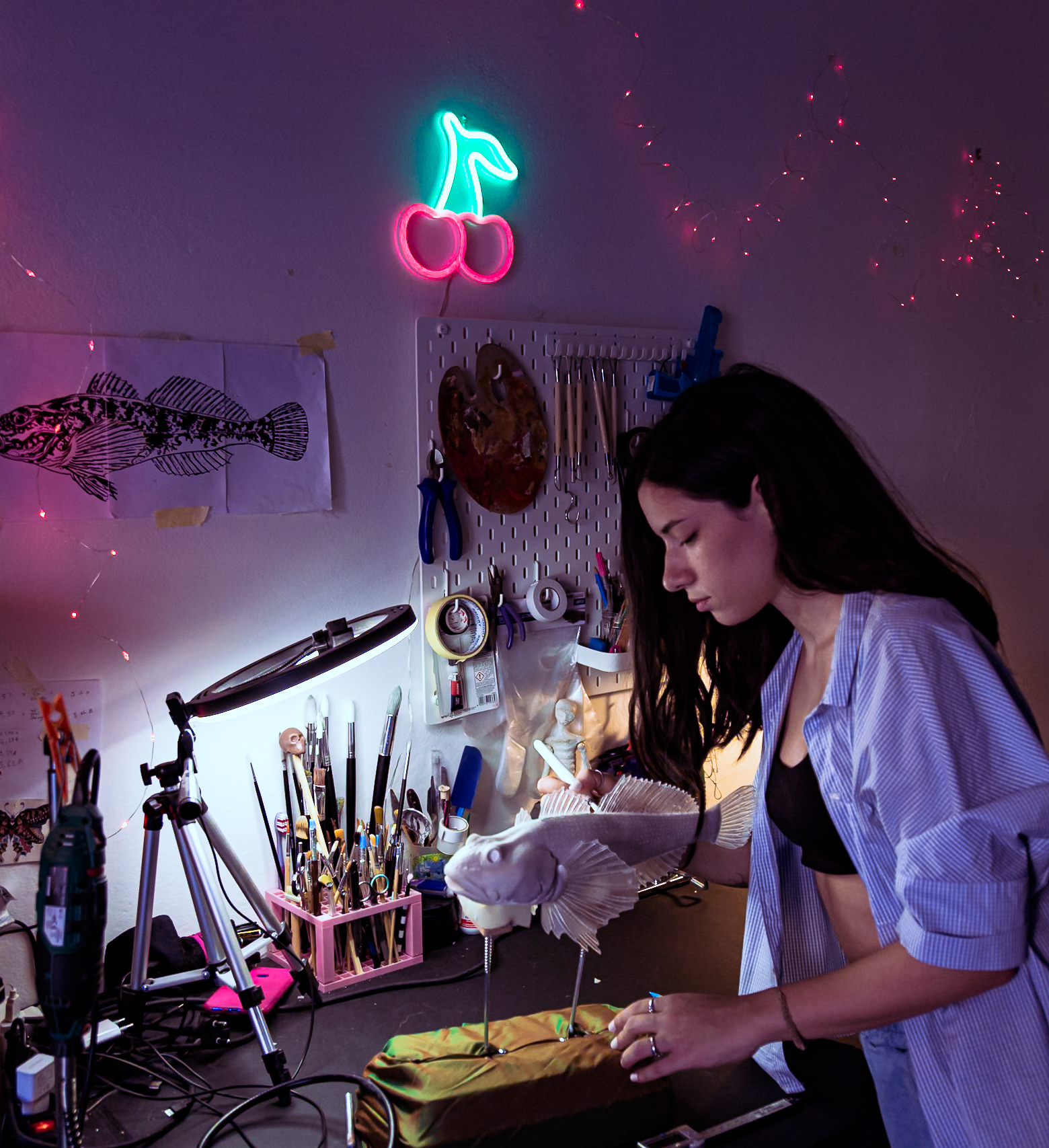 Sono una prop maker specializzata nella creazione di oggetti di scena unici e personalizzati. Dalla progettazione delle sculture alla realizzazione di stampi in gomma siliconica (da colata o in pasta) e dei relativi supporti, seguo ogni fase del processo con precisione e cura artigianale.
